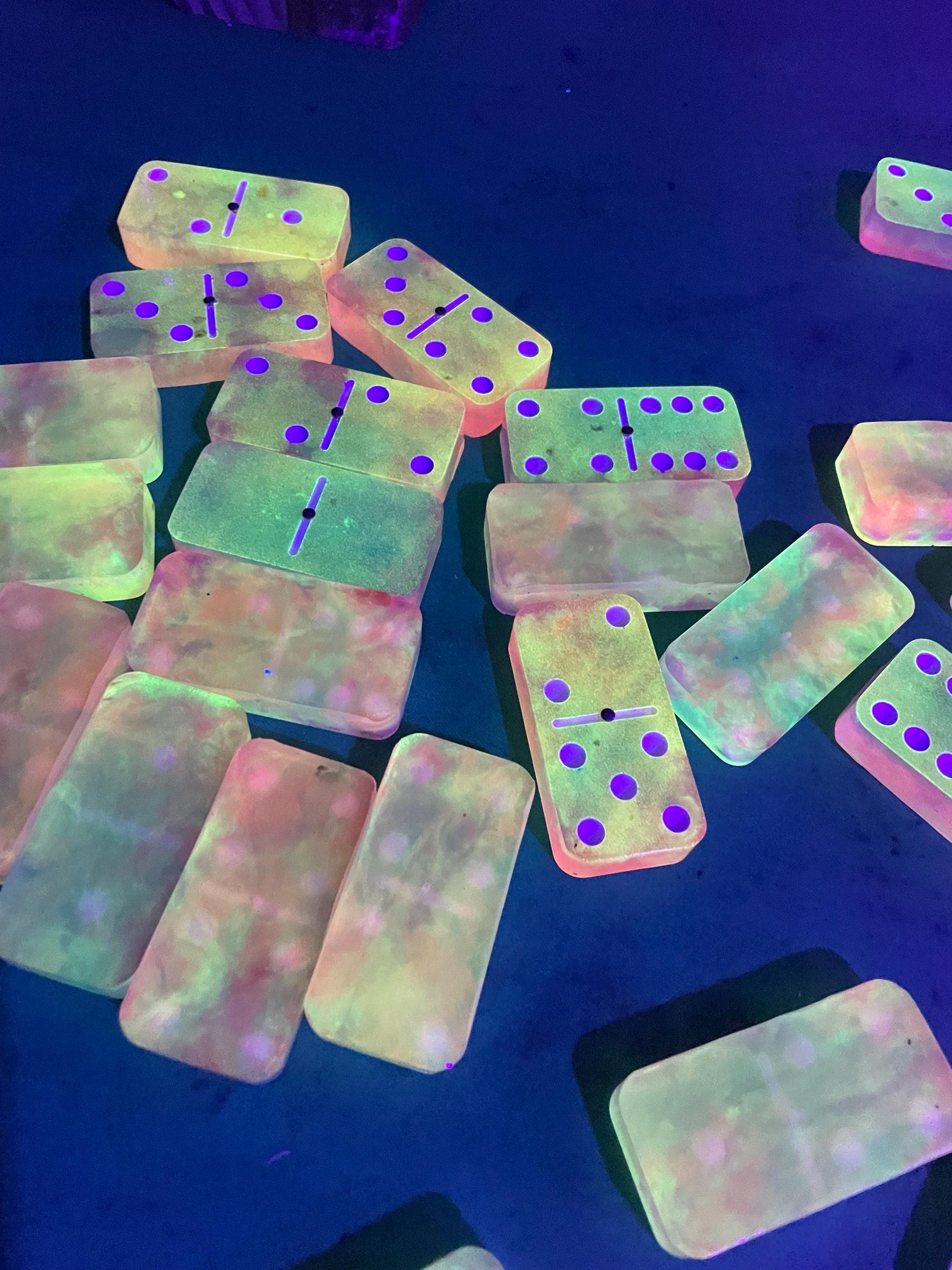 . Illuminate your game nights with our glow in the dark dominoes, designed to add a magical twist to your favorite pastime. These high-quality dominoes not only provide endless entertainment but also create a captivating visual experience as they glow softly in the dark, making them perfect for evening gatherings or cozy nights in. Crafted for durability and ease of play, they are a must-have for both casual players and serious enthusiasts. Transform your game collection and enjoy hours of fun with a unique glow that sets the mood for unforgettable moments.