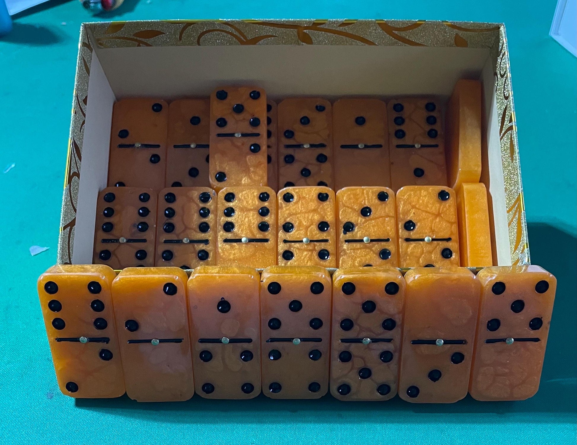 Elevate your game nights with our vibrant domino set featuring striking orange pieces. Perfect for both casual players and serious enthusiasts, these durable dominoes are designed for endless fun and strategic play. Their eye-catching color adds a modern twist to a classic game, making it an ideal addition to your collection or a thoughtful gift for friends and family. Don't miss out on the chance to brighten up your game table with this unique set!