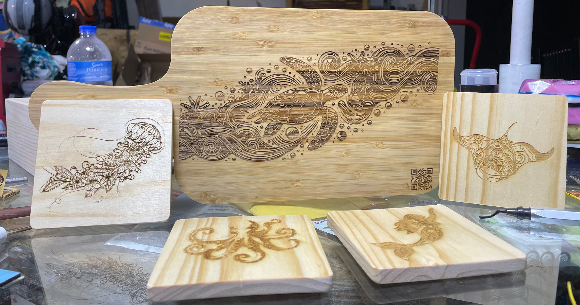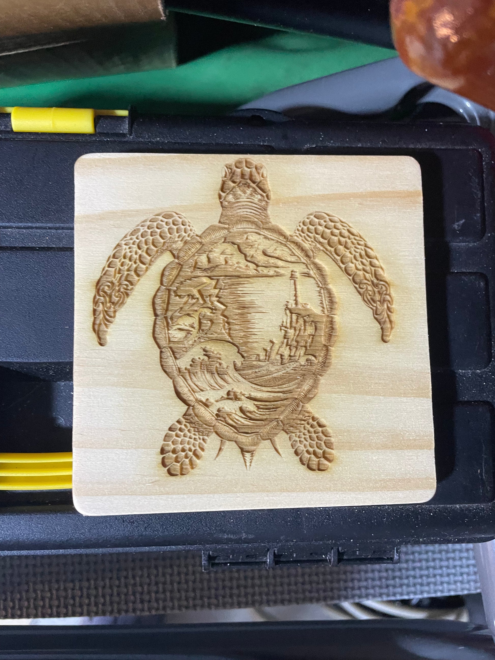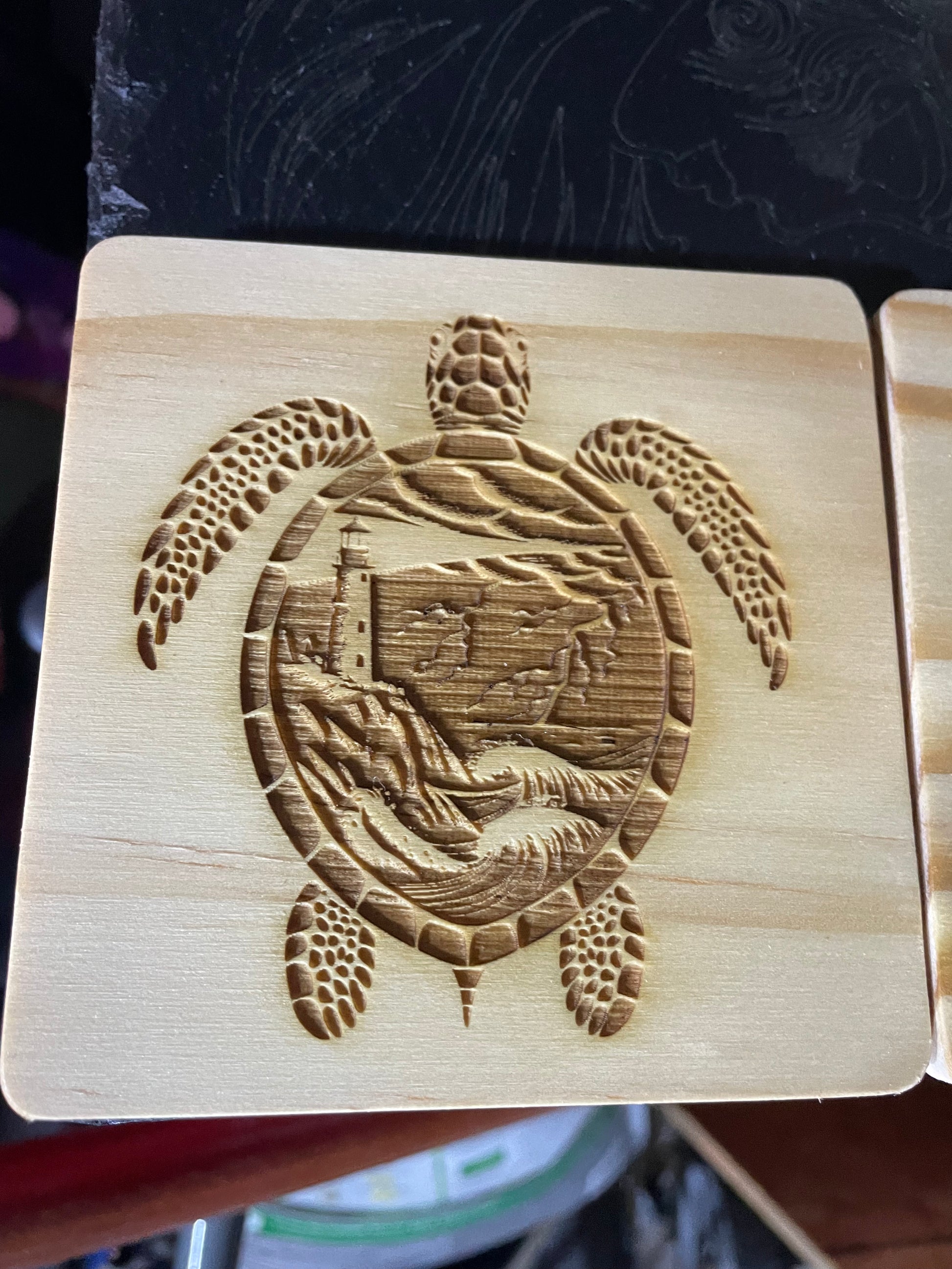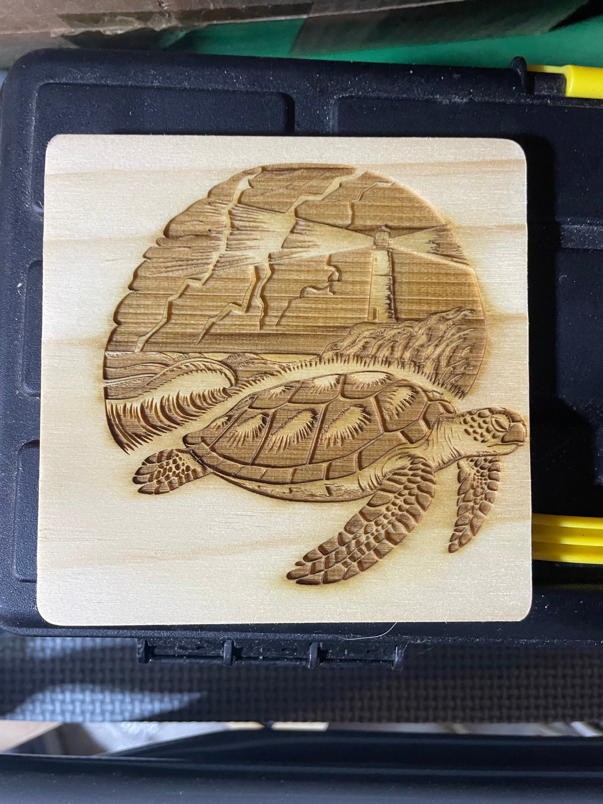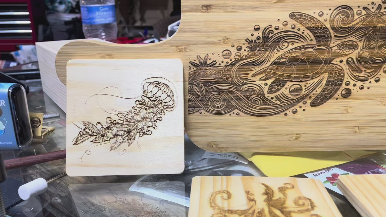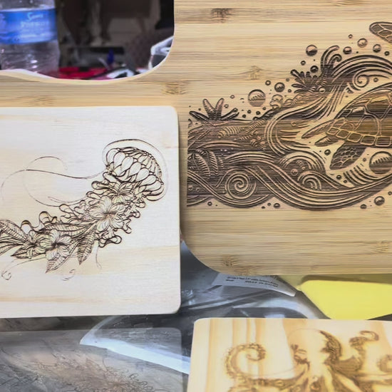 Sea turtle.. wooden coaster and cutting board/charcuterie board. Set- includes 4 wooden sea turtle coasters and a sea turtle cutting board